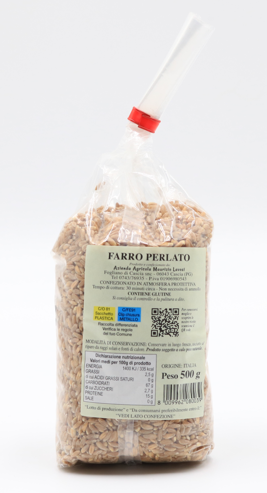 Il farro perlato è un cereale ottenuto dalla lavorazione del farro, privato in parte degli strati più esterni del chicco. Questo processo lo rende più pratico in cucina, perché cuoce più velocemente e spesso non richiede ammollo.