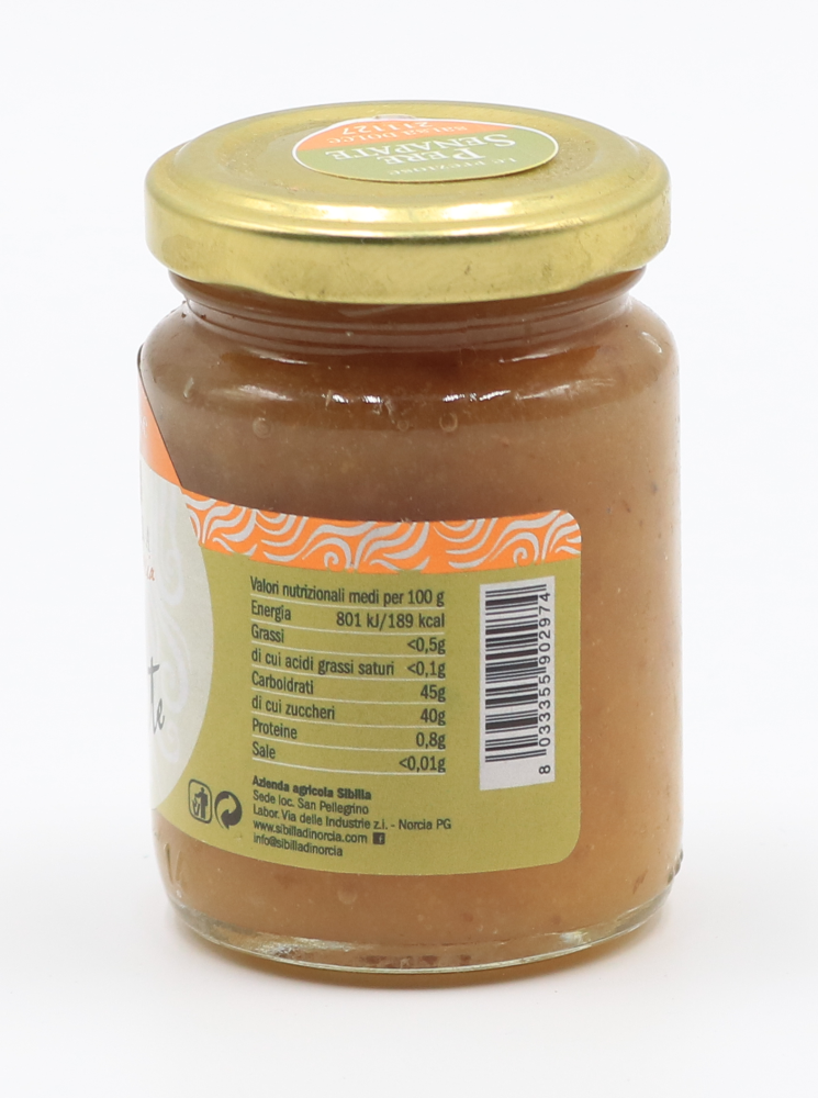 Le pere senapate sono una salsa dolce dal gusto raffinato e originale, in cui la naturale delicatezza della pera incontra una lieve nota di senape che ne esalta il carattere. Il risultato è un prodotto equilibrato e versatile, ideale per accompagnare formaggi, taglieri e abbinamenti ricercati. Prodotto vegano e senza glutine.